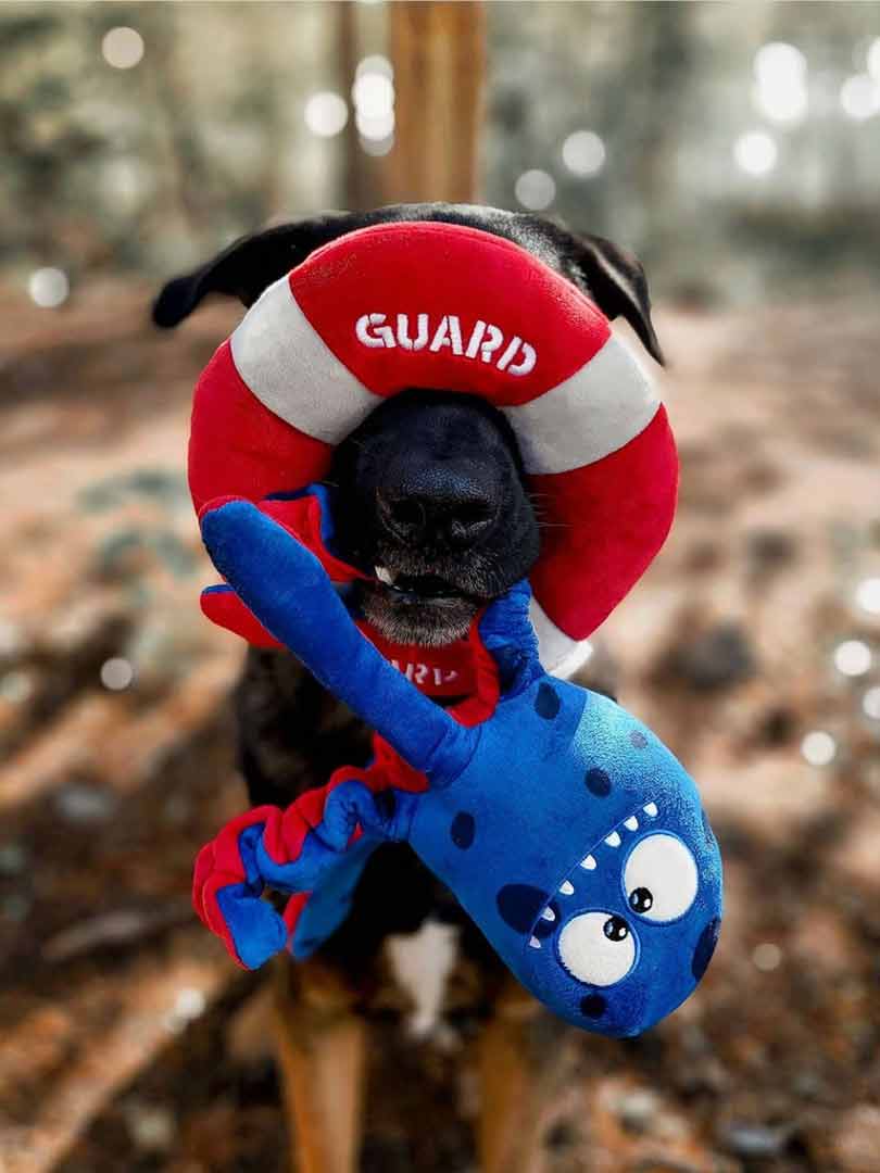 What do you get when you cross a six-legged octopus (yeah, we’re making it a thing) with a lifeguard ring? A plush toy on duty to rescue dogs from boredom. Prepare for the most fun tug-and-fetch games: pups love to shake, flip, and whip the octopus by its crinkly and bungee legs. Your dog will have a blast finding the hidden bonus toy inside Tugtopus' stuffing. Plus, they get a kick out of hanging the ring on their snouts… Hello, photo opp.